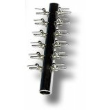 Verchromter Metall-Luftverteiler mit 8 Anschüssen, jeweils regelbar mit Absperrhahn. Tüllenende für 9 mm Schlauch.